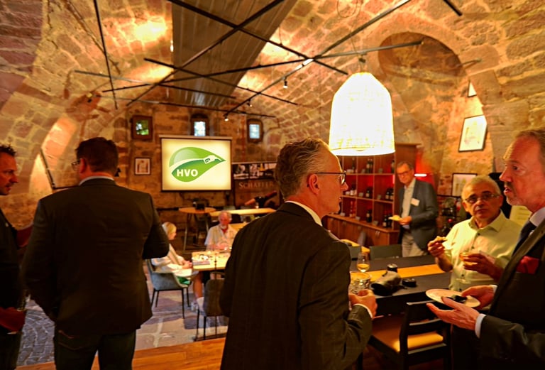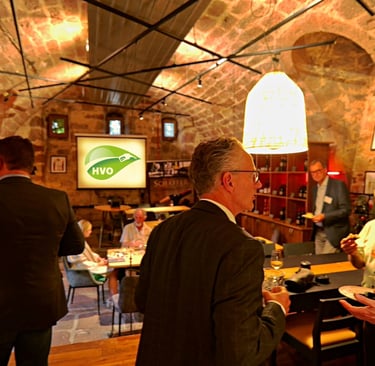 Der technikaffine Kommunikationsexperte Christian Elvers (Mainz) engagiert sich seit rund 20 Jahren für abgasarme Dieselmotoren auf der Straße sowie im maritimen und stationären Bereich. Für ihn hat HVO das Potenzial zum Gamechanger innerhalb der sachfernen Verbrenner-Diskussion: Dieselmotoren müssen für den HVO-Betrieb nicht modifiziert werden, die Tankstellenverfügbar-keit darf nach jahrelanger Blockade durch das Bundesumweltministerium nun endlich auch bei uns ausgebaut werden (in der EU gibt es bereits rund 12.000 HVO-Tankstationen). Die saubere Verbrennung produziert nur noch die Hälfte an Rußpartikeln und erhöht damit die Langzeiteffizienz von Abgasnachbehandlungs-systemen, was sich in immer mehr Herstellerfreigaben widerspiegelt. Doch lässt sich HVO auch als speicherbare grüne Energie definieren und für eine Absicherung kritischer Infrastrukturen einsetzen, wie Christian Elvers am Beispiel des Projekts "Energiezelle" in seinem Heimatlandkreis Mainz-Bingen erläuterte, für das er sich zusammen mit Prof. Türk engagiert.
